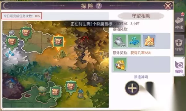 神格下的探险,三个小时一次,每个神格可以派遣一次,有额外的加成,如果时间允许的话,可以分批派遣,达到收益最大化。