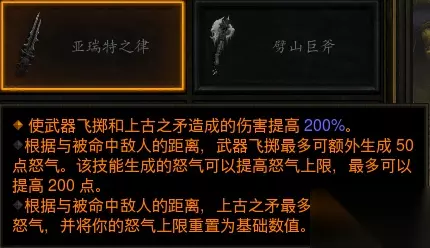 这是先祖锤的连杀技能,如果要打裂地斩的话,其中的疾奔、跳斩和战斗怒火可以换成其他技能回能。 如果你啥都没有,可以试试去苦难旷野连杀,不过比较需要操作就是了。 三、降等武器 野蛮人的降等武器推荐做双手剑或者双手斧。