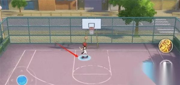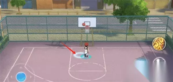核心技巧二:精确站位 篮球落地前,场地会标示出落点区域,这是决定你是否能顺利拿球的第二要素。 站位原则: 优先站在落点中心位置 保持人物朝向正对篮筐,避免斜向站位 及时小步调整,不要频繁跑动造成卡顿 特别提示:落点位置每次略有偏移,需通过球的弹道判断偏左或偏右。