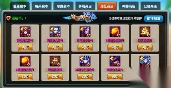 【远征商店】如果你好运获得了远征币,那么恭喜你,你可以在远征商店中兑换稀有道具,其中更有特殊英雄碎片等着你来!