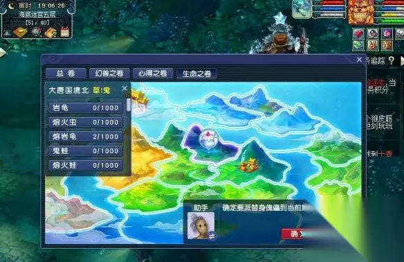 二、任务流程详解 核心提示: 探索+移动+触发事件 = 解锁任务与奖励! 1. 进入玩法 操作步骤: 点击山河社稷图 → 选择“生命之卷” → 任意区块开始探索。 初始设定: 助手默认携带替身傀儡,探索时间为40分钟。