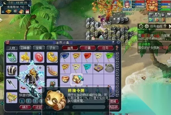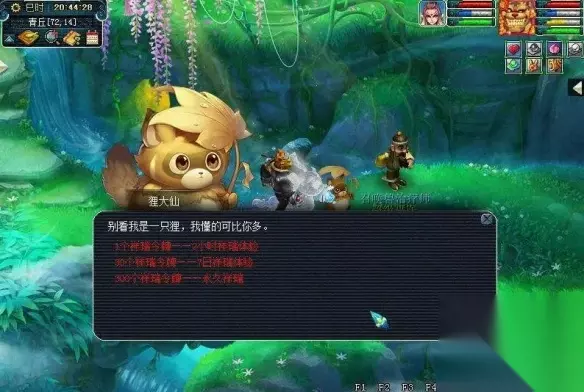 3. 祥瑞令牌兑换 兑换方式: 前往青丘(75,15)找狸大仙,使用祥瑞令牌兑换望月蛙祥瑞或元宝龟祥瑞。