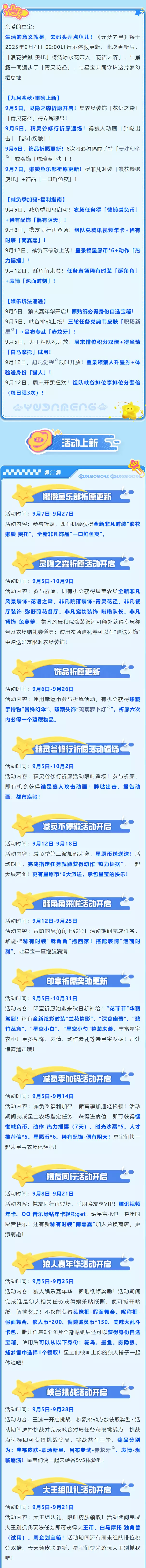 元梦之星9月4日版本更新公告