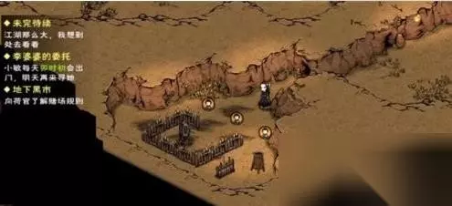 【烟雨江湖西王母之泪支线任务玩法攻略】 一、前期准备 前置要求:需要完成【天山:天山难行】、【落霞镇:野狼谷·其一】且与翠翠好感度达到90+、【十方集:白袍和尚】、【十方集:十方地志】、【十方集:古城秘闻】 任务需求:「火折子」若干,用于照明、「琉璃镜」*1、「铁锹」*1,轻功:水上漂九重,少林轻功九图六坐像或者一苇渡江 二、流程攻略 落霞镇客栈,对话冷面女子 来到十方集(23,8),白袍和尚邀请你避避风沙(没做「天山难行」支线也可以在落霞镇客栈触发冷面女子,但无法在十方集触发和尚邀请避风沙,所以还是需要先拿到财神帖才可以) 与和尚交谈,继续交谈,选择【闭目聆听】,给予“财神帖”(少林弟子可以一同念诵) 1进入黑市 男号 客栈睡到子时找沙漠狐狸(13.7),给予财神帖,选择【讨教还价】,选择【答应】;客栈睡到午时前往圻漠石窟(19,24),等待沙漠狐狸,等上一阵子,介娘们终于来了 沙漠狐狸(19,24)对话:选择【什么都不说】、【不解】、【何意】;她会告诉你午时进入是地下黑市的规矩,然后跟上沙漠狐狸,沙漠狐狸(17,29)对话:观察四周,沙漠狐狸打开机关,沙漠狐狸与一身黑的守夜人金老对话。沙漠狐狸(17,29)对话:问你记不记得你欠她一个承诺,【记得】;她要求你进入黑市后保护她,选择【那进去吧】。跟着剧情走,陪着两人看奴隶。看到第三个奴隶时,选择【挣脱】,【反驳】。最后一个笼子里关着翠翠, 选择【查看情况】、【救下翠翠】、【抱起翠翠】选择【她是我的人】或【都给爷滚】,都一样,翠翠对你的好感提升了(好感+5); 选择【我会保护你的】; 清理奴隶营的守卫×3.