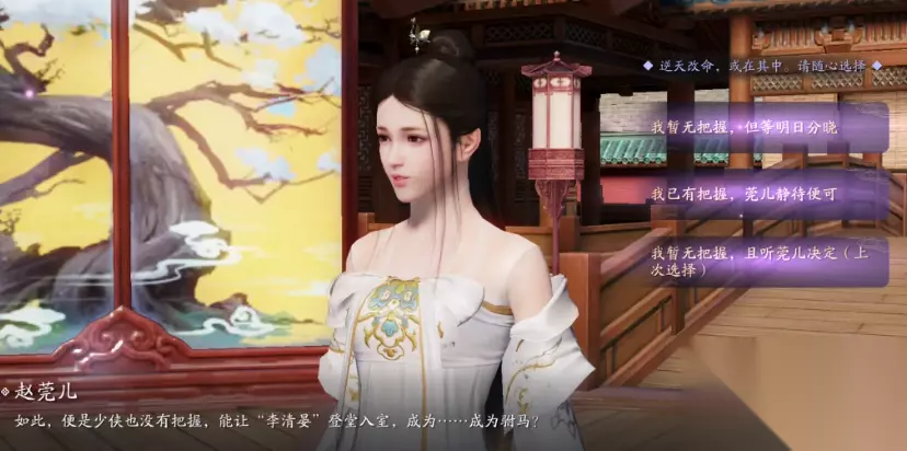 天涯明月刀手游赵莞儿天命结局攻略一览 1、选择【我已有把握,莞儿静待便可】触发特殊结局,建议优先选择,有特殊成就【得成比目何辞死】。 2、选择【我暂无把握,且听莞儿决定】触发结局燕燕于飞:皇城前,遥遥三拜,君国天下,就此辞别。(和莞儿私奔) 3、选择【我暂无把握,但等明日分晓】触发结局红烛息景:父君圣命,圣旨一张,侠客岛久候良人,嫁衣燃起,纷飞又寂灭。(违背圣旨,忘却身份,归隐于世) 4、特殊结局【比目连枝】:她低声喃喃,赵莞儿得配李清晏,此生......足以。(终得所愿,红尘岛屿,白首成约) 天涯明月刀手游赵莞儿天命结局攻略一览不少玩家搞不定,以上内容就是最详细的攻略,每一个流程都很清楚的介绍,相信能帮助大家解决问题,这款游戏中的任务和玩法还是很多的,不少玩家也都在求助,关于这款游戏的相关攻略,这里还有很多,快来看看吧。