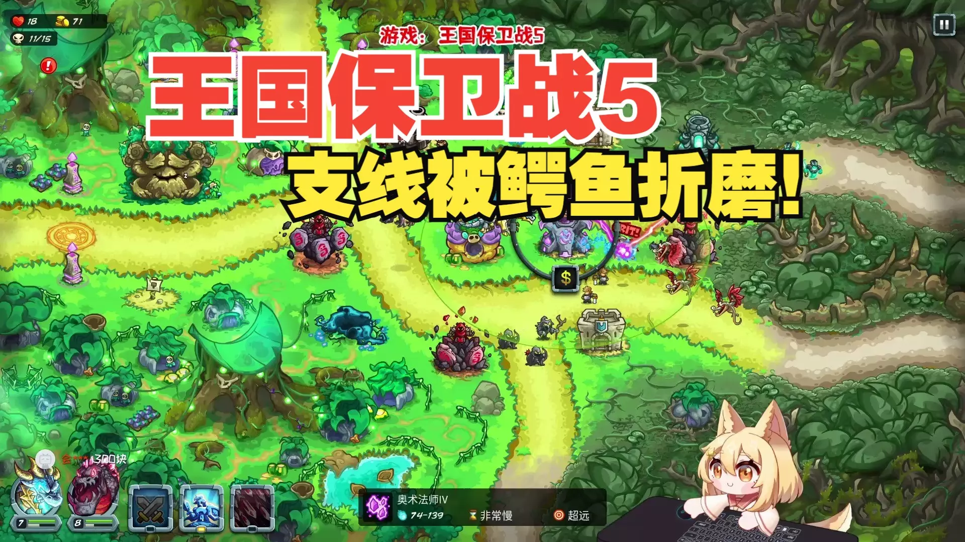 这是《王国保卫战5》的游戏内容分享,属于童年回忆向的第3期内容,展示了游戏内的关卡防御布局,还完成了喷火器的解锁,呈现了塔防战斗的过程。