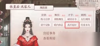 打开深宫曲,点击【离开寝居】按钮。