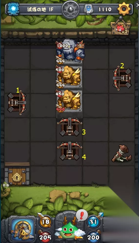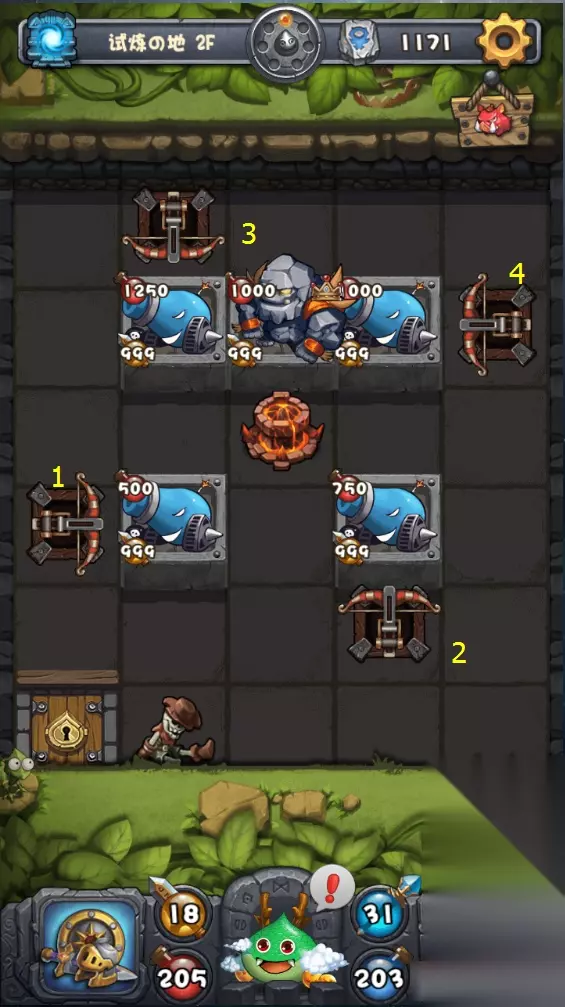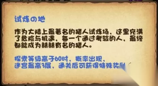 探索等级高于60时,概率出现,迷宫最高3层,通关后可获得特殊奖励 试炼の地打法 1、试炼の地副本的通关关键就是弓弩的释放顺序小编为大家将每一层的弓弩顺序都标注出来,轻松通关。