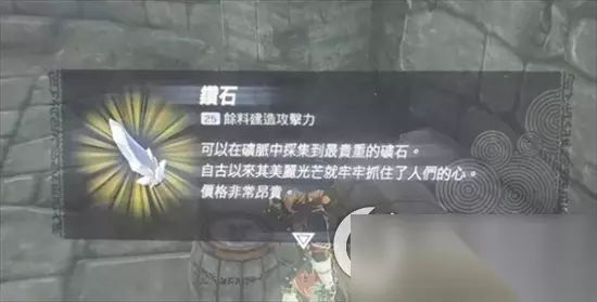 钻石的位置 1. 前往海拉鲁城堡的食堂附近。 2. 进入监视堡垒,沿着前方的道路直走,使用究极手推开大门。 3. 在山坡上奔跑,进入右侧的入口,使用究极手打开前方的两扇升降门。 4. 经过升降门后,从左侧楼梯上去,在T字路口处,会发现天花板上有两只小怪物,无需与它们战斗,直接向右转。 5. 进入下方地下室,你会看到一个宝箱,打开宝箱即可获得一颗钻石。