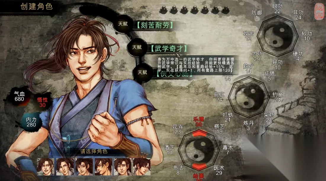 开局时最关键的属性是悟性、攻击和防御,其中悟性直接影响学习武学与技艺的效率,建议初始值保持在20左右即可满足前中期需求,因为剧情推进中会自然获得大量悟性加成,无需在创建角色时过度堆砌。攻击与防御属性作为战斗中的硬性指标,应尽可能塑造得高一些,两者都达到20以上能为早期冒险提供可靠保障。
