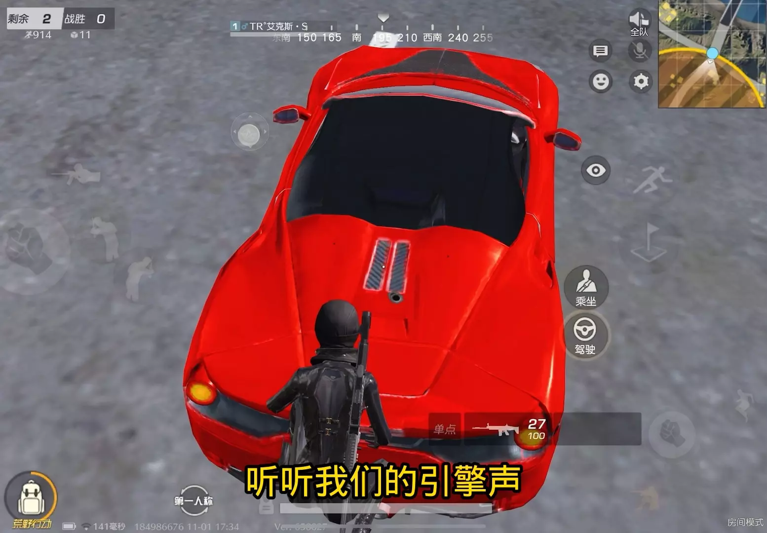 这是《荒野行动》的第一视角游戏内容,展示了玩家驾驶蓝色三轮载具,和队友一同在地图中移动,前往信号区,过程中还能看到空投提示,这款载具可搭载队友,助力玩家在对局中转移。