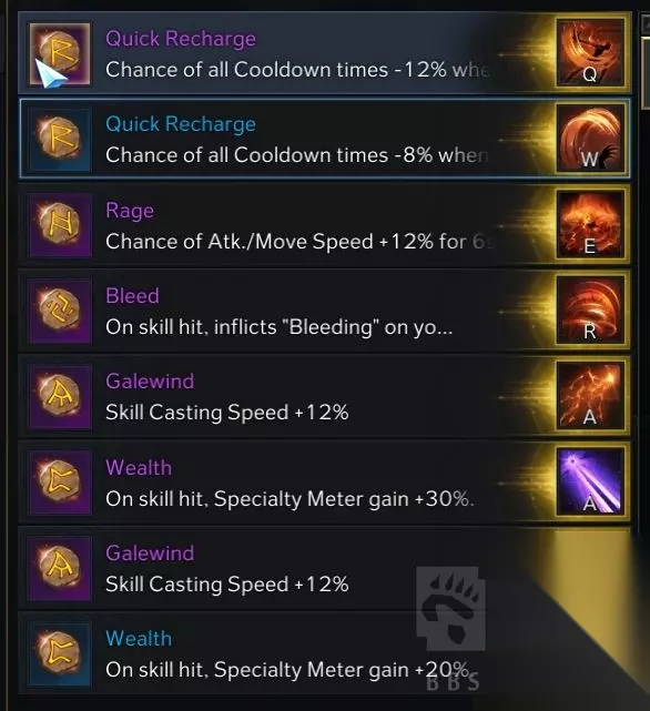 这个技能二层三脚架点第一个攻击时间长但能多回复四分之一左右能量,因为这个技能cd短所以可以第一个打出去,如果空技能了可以很快打出第二个补能量。 没有测试但目测回能大多与攻击命中次数有关而与伤害没什么关系,所以我们要考虑如何安全快速的打出回能来变身,不变身的技能伤害并不高,吃了专长与宝石加成的恶魔技能才是输出大头。 突袭切割二层三脚架点出5秒20移速可以吃到突击队长增伤,技能点不够的情况下这个技能优先级最低,因为只用来赶路。 觉醒我带的二觉因为一套技能已经可以变身了,拿二觉打伤害。 如果打造低一套技能不能变身可以点出三脚架里的减cd。半魔刷混沌不需要换技能。 符文