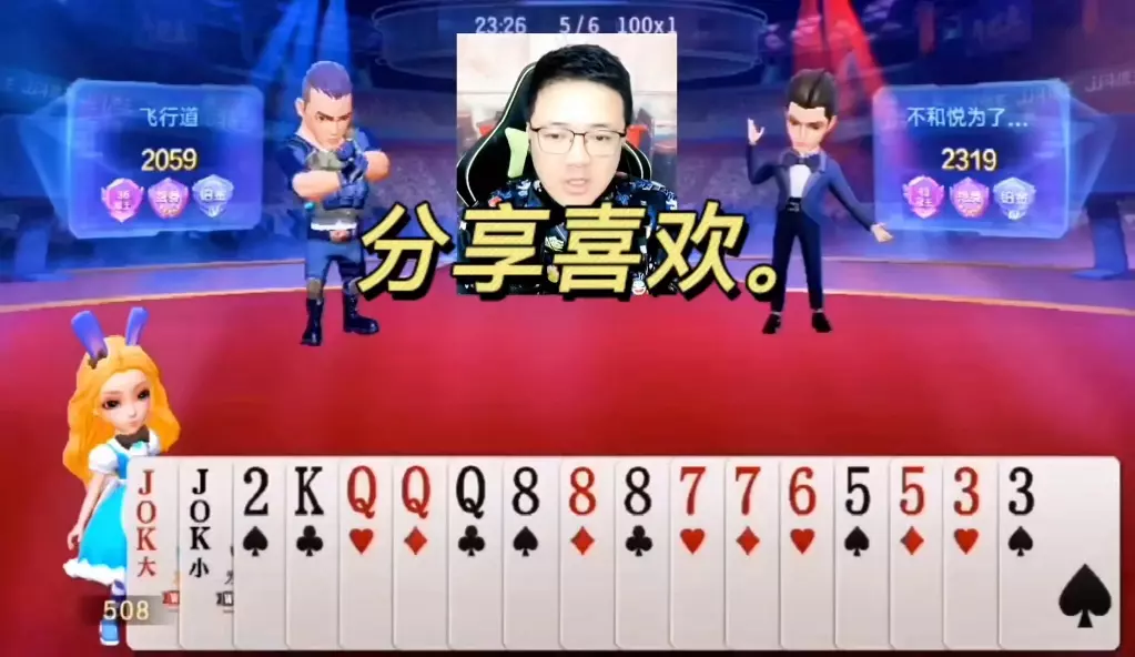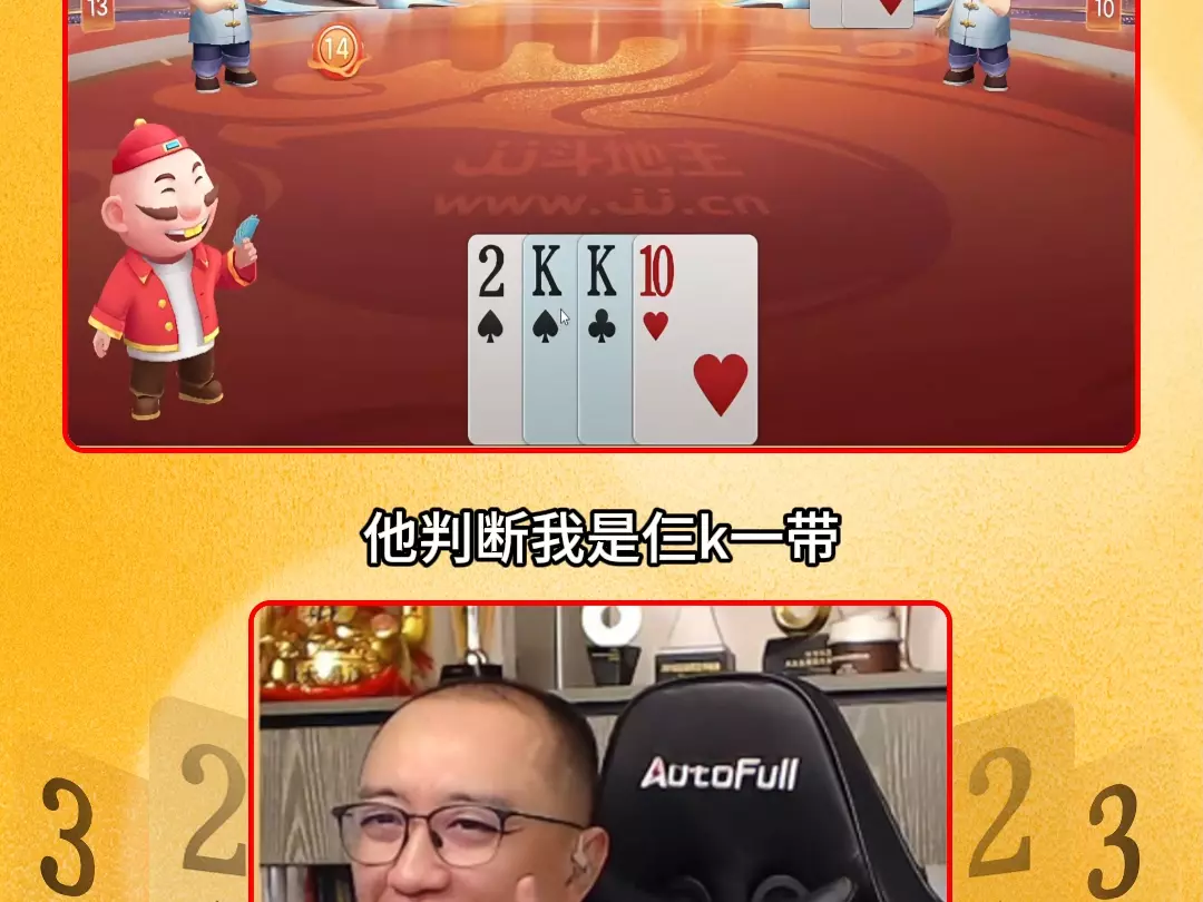 三岁玩牌破釜沉舟四个3的大胆一炸后期残局细腻的行牌为自己争取到了胜利!