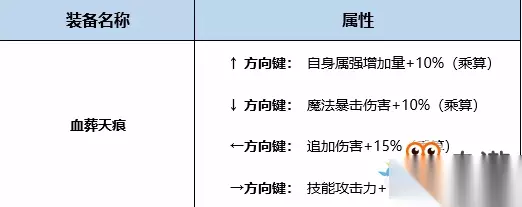 2、换装搭配思路 穿戴血葬天痕及异界罪业征伐6件套的情况下堆满等级即可,没有绿色气息换装。 3、异界套装/异界散件(绿气息)属性介绍