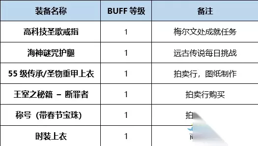 5、等级装备推荐 此处非全部装备,其余增加技能等级的都可使用。