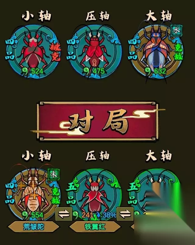 《蛐蛐也疯狂》押宝方法介绍 1、当我们培养出来蛐蛐的时候,就可以去打比赛,和别人的蛐蛐同台竞技了 2、比赛模式是三局两胜模式,也就是我们一共只能上场三只蛐蛐 3、三只蛐蛐分为小轴、压轴和大轴,需要我们配置好位置 4、建议把最强的蛐蛐放在小轴和压轴上面,赢两局就会被判定胜利