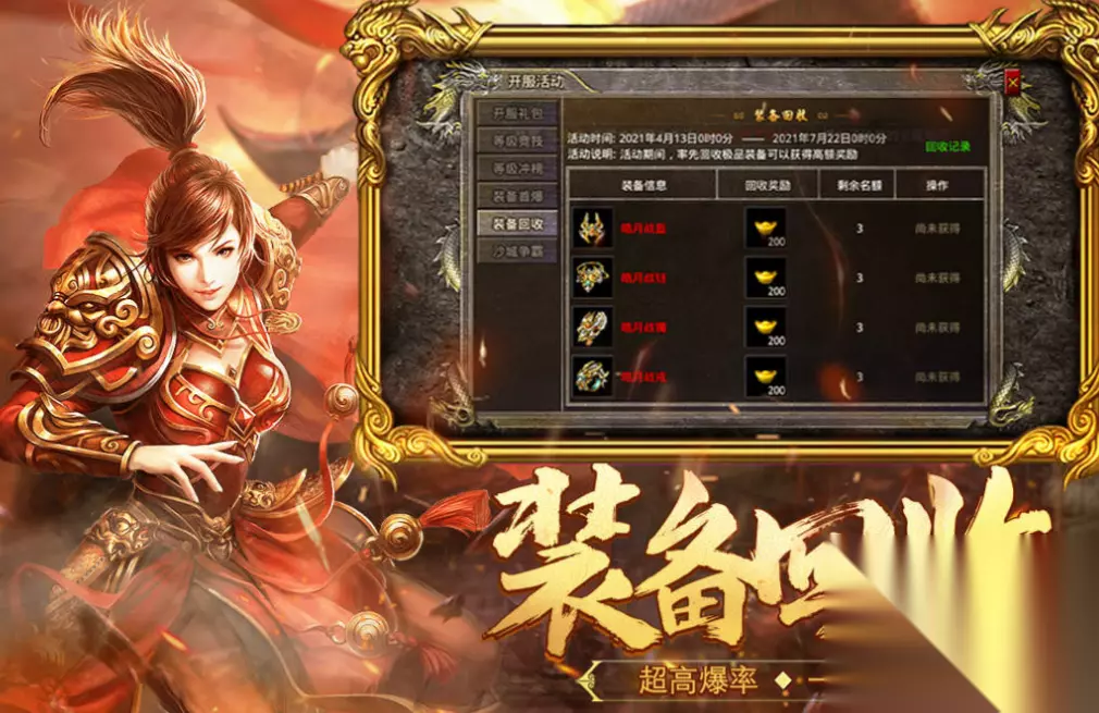 热血沙城这款继承了真实传奇世界观的手游内容很丰富,完美复刻的职业性质和地图让人印象深刻,特殊的竖屏操作系统玩起来更方便而且爆率更高,极为丰富的模式、玩法和PVP战斗系统增加了耐玩性,颠覆传统的传奇游戏体验更让众多玩家欲罢不能,元宝和装备满屏爆的画面带来了视觉震撼。 扫码下载该游戏 高速下载 普通下载 优先233乐园APP下载 5、《王者传奇》