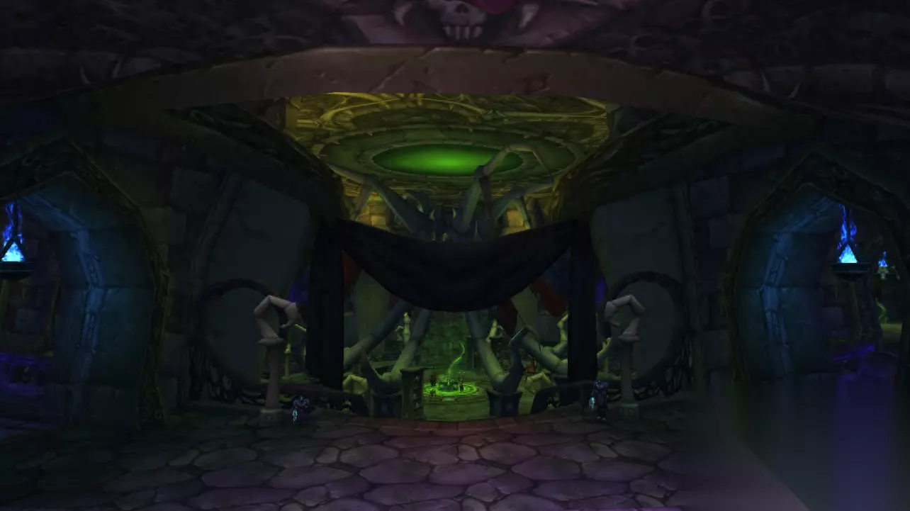 死亡骑士的职业大厅,就建设在黑锋要塞的上一层,虽然说死亡骑士是巫妖王麾下的军队,应该有着巫妖王时代的风格,但是DK的职业大厅和冰冠堡垒相比较相差太远,不过这里还是给了DK职业玩家有了回家的感觉,毕竟出生地就在这里啊。