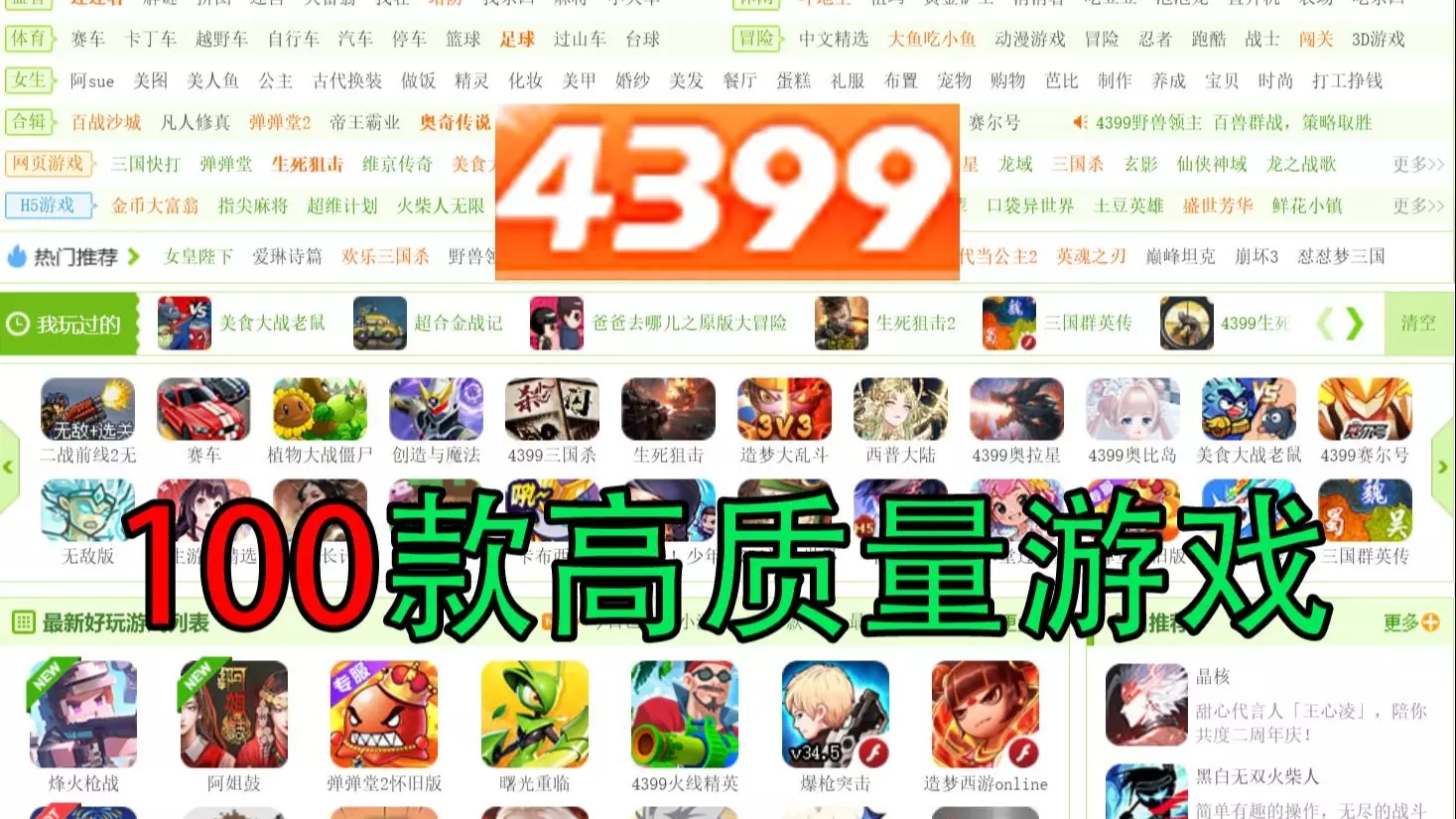 100款4399高质量小游戏,包含一些下架的游戏,全是自己录制的素材,下架游戏也是自己找的。