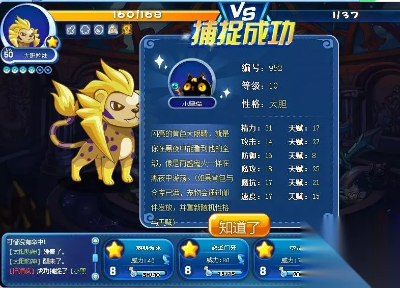而且很容易被抓住。小编还用了太阳豹神和两个高级咕噜球来接住它。也许这是老板们中最糟糕的一个。我的儿子被当作野兽一样对待。多么痛苦的领悟啊~