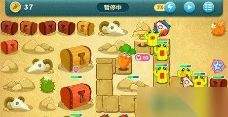 大家在体验的时候就会发现,如果我们的任意出现的道具里没有冰冻星星的话,就意味着这个关卡的萝卜一定是会被咬伤几口的。但是小编在这个过程中发现了一个很好用的系统错误,其实就是在我们发现小BOSS们陆陆续续的往外跑以后,就可以开始不间断的去按暂停的地方了。这个时候你会很神奇的发现他们的生命值莫名其妙的下降了,大家真的可以去尝试一下,也许是因为系统在暂停以后将我们安装的炮塔的恢复速度重置了。再就是一些具体的内容了,关卡里会给我们的炮弹塔有这几种“瓶子、魔法球、星星、风扇、汽油瓶、太阳、多重箭、火箭、毒针、飞机、紫水晶”,可以说非常的齐全了。