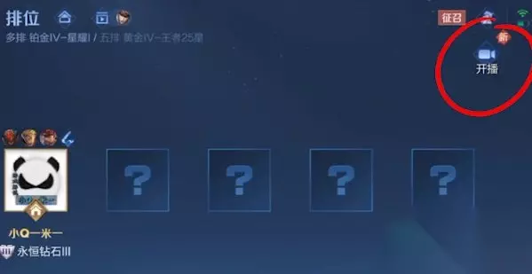 2、打开进入到组队房间,在右上角的位置看到开播的按钮; PS:没有开播按钮的话建议等待7个工作日会陆续上线的~
