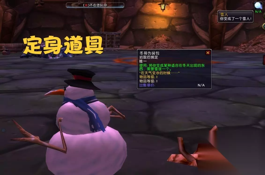第二步需要玩家在撤退前使用定身道具,比如冬幕节奖励的冬幕迷彩包。效果是玩家可以变成雪人,并且变形后无法移动。这个道具不仅没有CD,而且还可以连续使用。如果你有冬幕迷彩套装,还可以选择60级的化石混合物,效果是变成化石形态,持续1分钟。