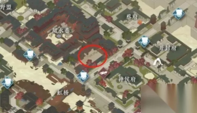 3、前往地图边缘,进入汴河区域找到石棺,躺进去。