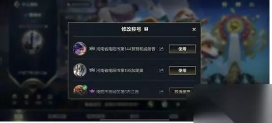 战区排名设置方法 1、打开英雄联盟手游,点击头像进入个人中心; 2、点击左上角头像; 3、点击修改称号; 4、选择使用地区排名称号,设置后在对战中即可显示地区排名或者英雄排名。