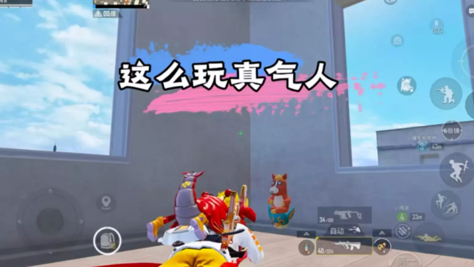 这是《和平精英》的游戏内容,展示了玩家在实验基地进阶场景里的战斗过程,玩家借助集装箱等掩体周旋,使用AUG突击步枪击倒敌人,完成1穿4的精彩操作。