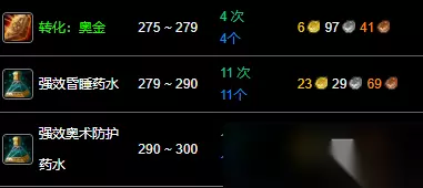 290~300:制作10次强效奥术防护药水。