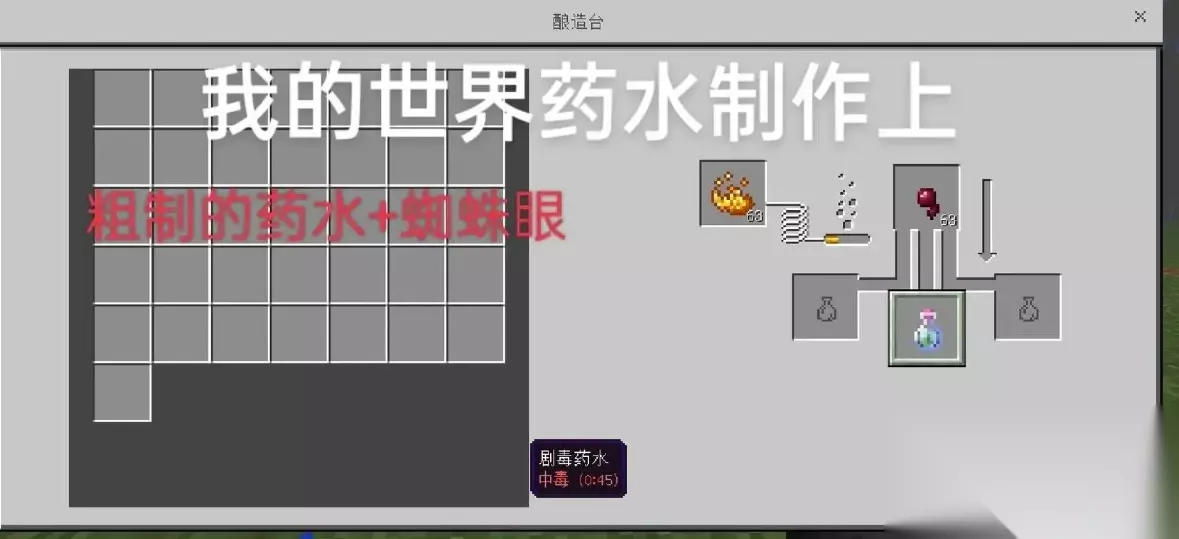 我的世界瞬间伤害药水怎么做 4、然后,放入发酵的蜘蛛眼,将治疗药水转化为瞬间伤害药水。5、如果您希望药水具有更强的效果,可以添加萤石粉来提升药水等级至II级。6、请确保在酿造过程中使用正确的材料,并且按照正确的顺序放置在酿造台中。瞬间伤害药水可以对接触到的实体造成即时伤害,是非常有用的战斗辅助物品。