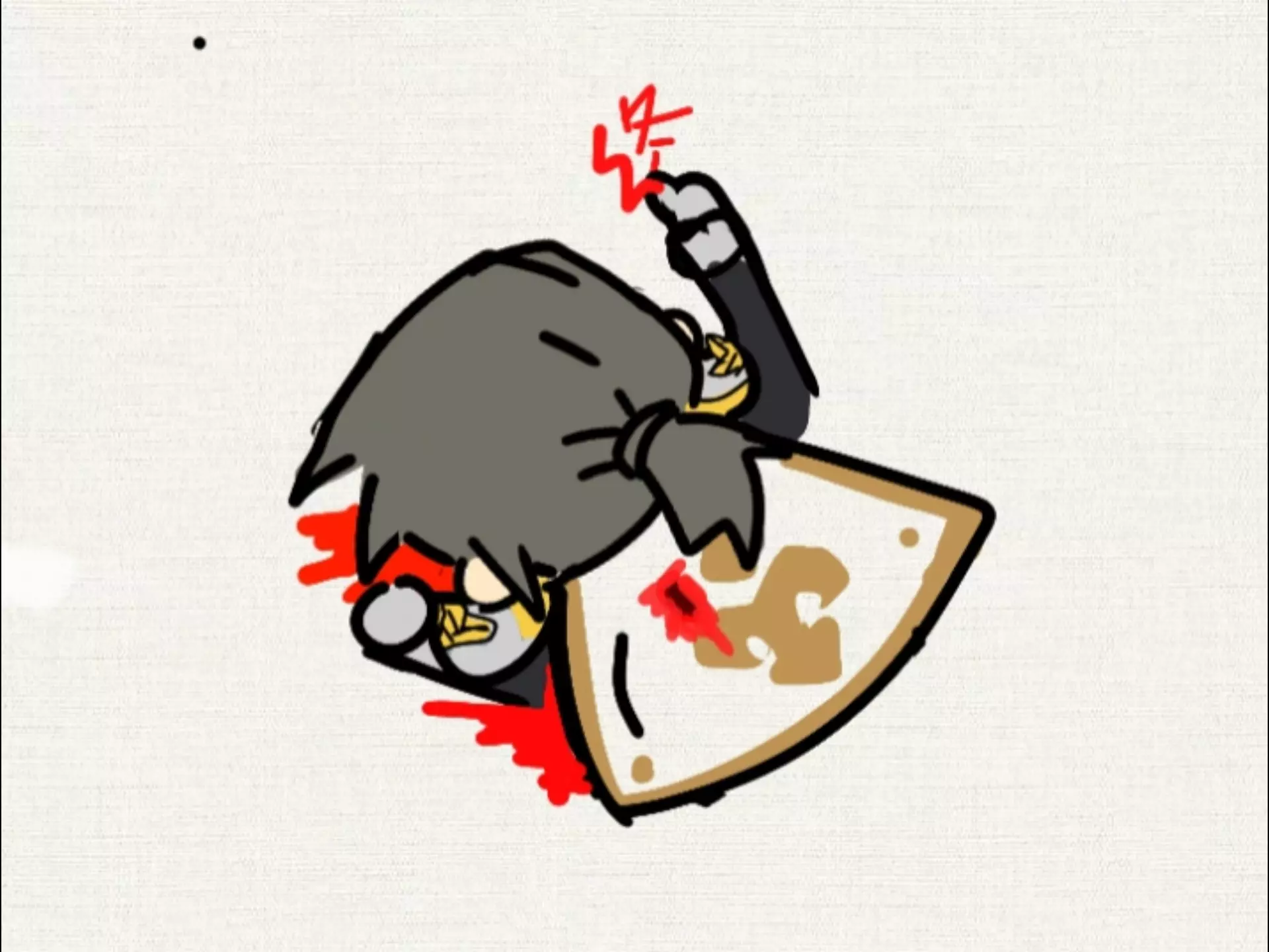 这是一篇同人创作图文帖,作者分享了一幅病娇风格的人物手绘,不过作者表示忘记给这个人物画上伤疤了。