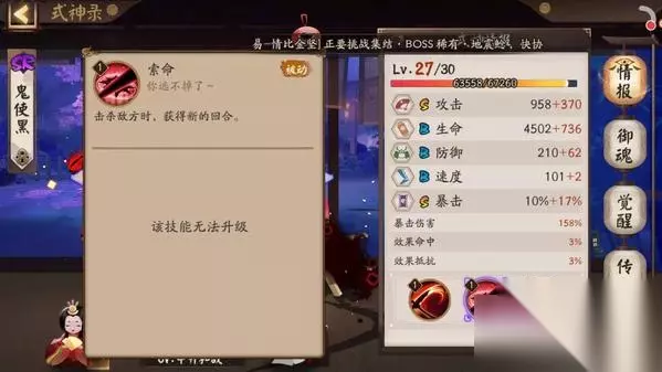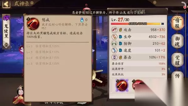 阴阳师鬼使黑御魂最新搭配推荐 【情报介绍】 我们如果想要知道“非洲第一战神”鬼使黑御魂该怎么搭配的话,首先需要知道他的技能: 惩戒