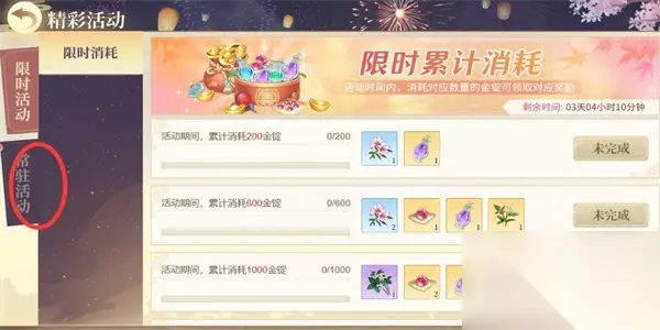 2、点击进入发哦精彩获取页面,在此页面继续点击【常驻活动】的功能选项。