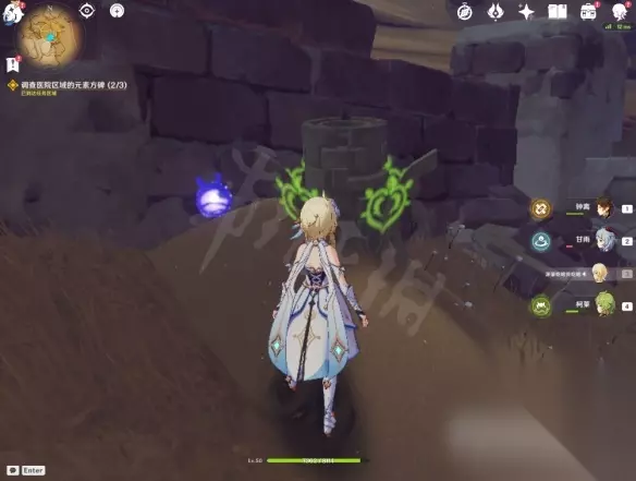 16. 我们需要在医院调查三块元素方碑,其中一个在边上一个在屋顶上,还有一个需要风系角色将沙子吹飞才能解锁