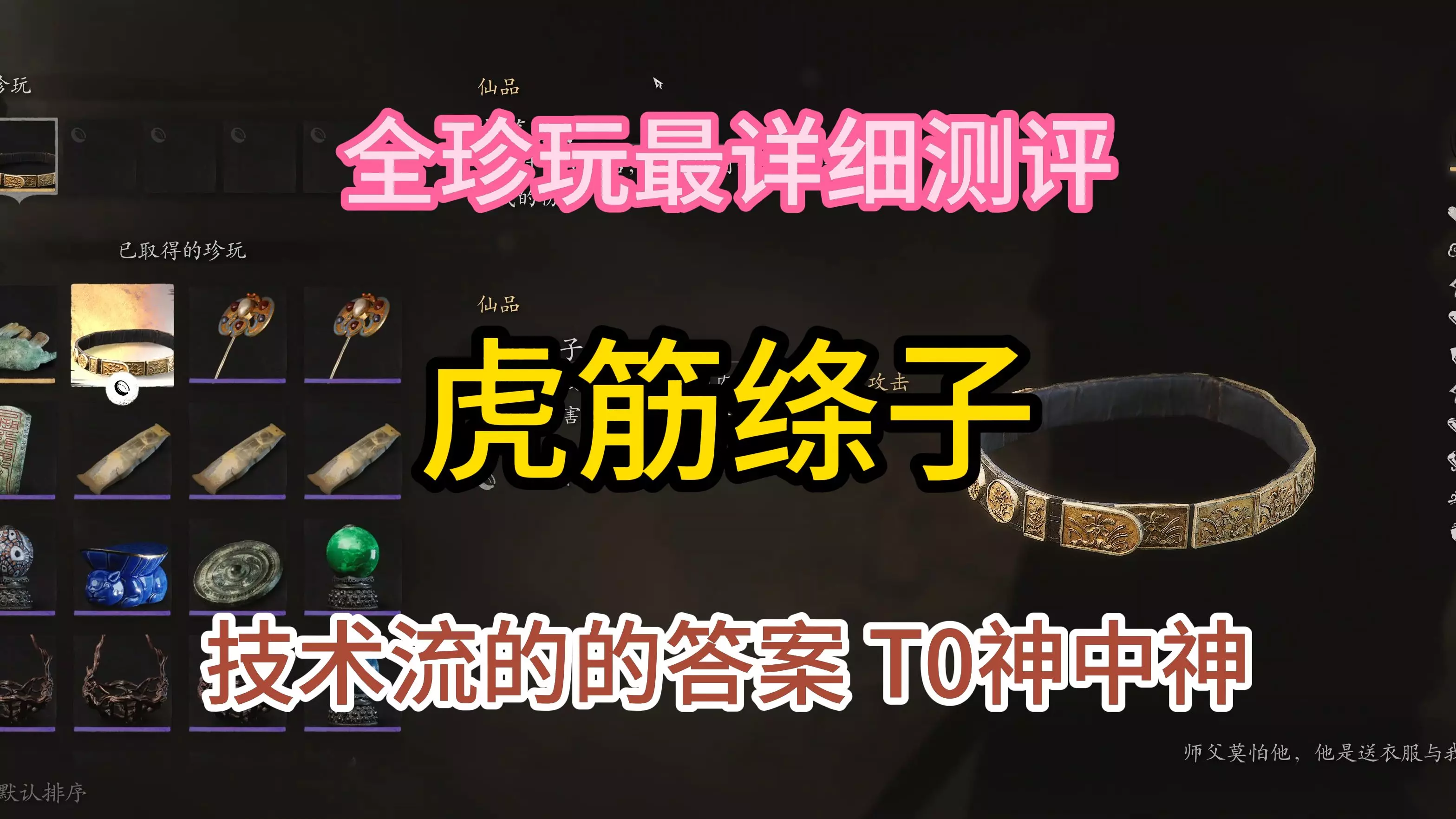 不测不知道 一测吓一跳 虎筋绦子对识破流增益太大了 劈棍带这个收益简直顶五个珍玩槽 神中之神 缺点是吃技术和难刷