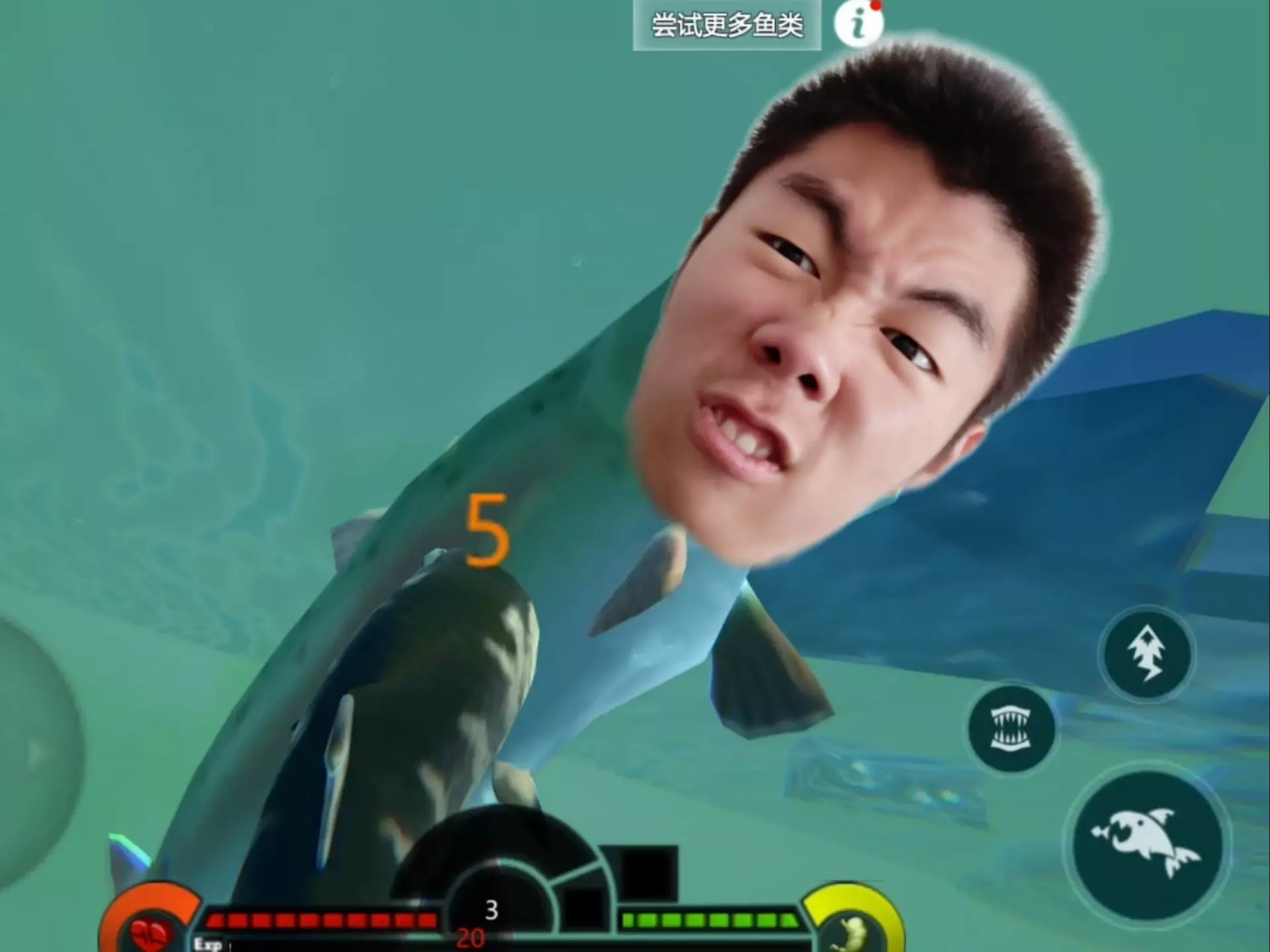 这是游戏《海底大猎杀》的拓展内容帖,展示了大白鲨在游戏的海底场景中游动的画面,呈现了游戏里的海洋生态与大白鲨的形态。