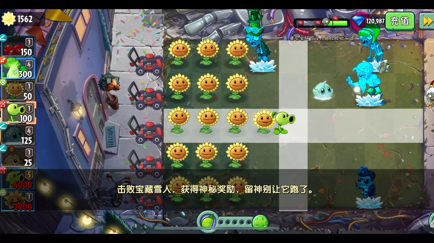 虽然原始豌豆一颗需要4000阳光前面很难用,但还是建议优先兑换原豌和原始向日葵 必须同时兑换42号原葵一次生产1000阳光,才能足够原豌种植!否则很难上场! 困…