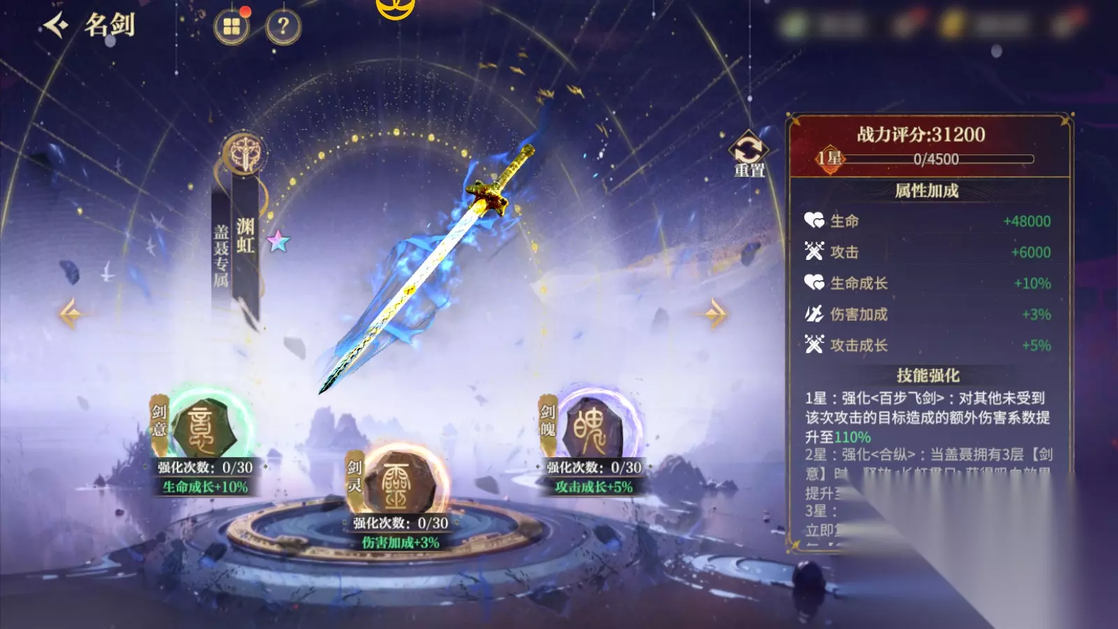 名剑介绍——尘封已久的「名剑」已重现秦时江湖 在《秦时明月》的世界中,除了赫赫有名的十大名剑之外,每个经典人物也都有着属于自己的独特武器,在《秦时明月:沧海》中将会一一呈现给少侠们,让少侠们喜爱的英雄携带着专属于英雄本身的「名剑」纵横江湖! 接下来,沧海君将给少侠们介绍一下在秦时沧海中已现世的「名剑」吧~ 解锁并强化「名剑」让英雄的战斗能力更上一层楼吧! 【渊虹】 剑圣盖聂的佩剑,前身是徐夫子母亲打造的残虹,为天外神铁所铸。荆轲刺秦失败牺牲后,其佩剑残虹为秦王赢政所得。渊虹是在残虹之上,由秦国最好的铸剑师糅合五金铸造而成。