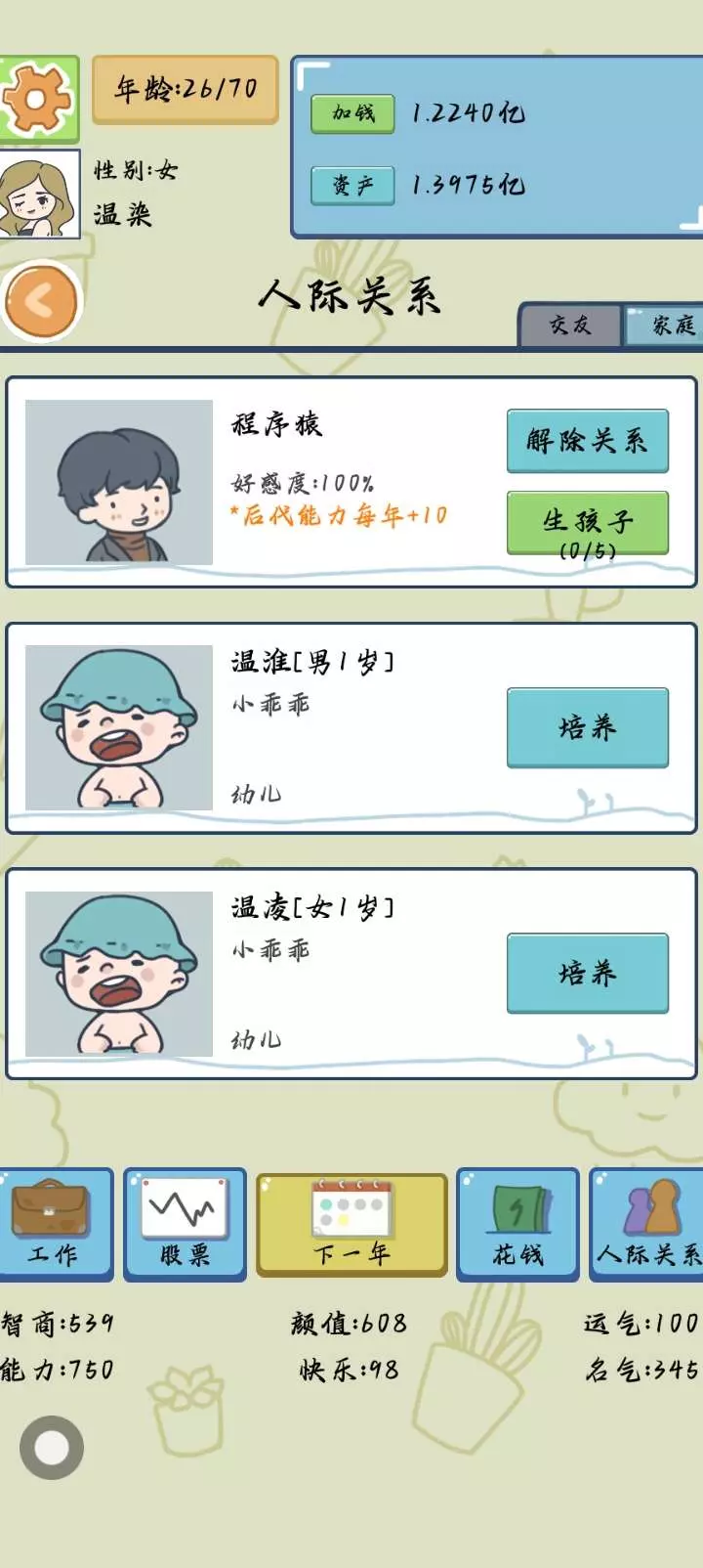 给自己制定的人生(现实中是牛马,游戏我非得当个罗马,上辈子的四个就一个女孩老三,刚出生一年)
