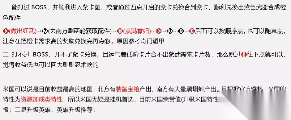 在最强蜗牛手游中米国完美如何进行探索呢?探索系统的内容还有不少玩家并不是很清楚呢!想了解的话,下面就来看一下吧~! 最强蜗牛米国完美探索流程攻略 图中绿圈表示开图情报,能点就点,优先度最高 加点顺序:①-②-⑧-⑨-①-①-②-⑤-..表示按图中顺序加点就可以),在这个阶段加点没结束前,推荐一-直刷北方,骑士用寡妇,副官随意 加点结束后,代表顺利开到西点手册(提前开启紫卡兑换探索结束可以兑换装备宝箱),这时候接下来的加点有两种选择