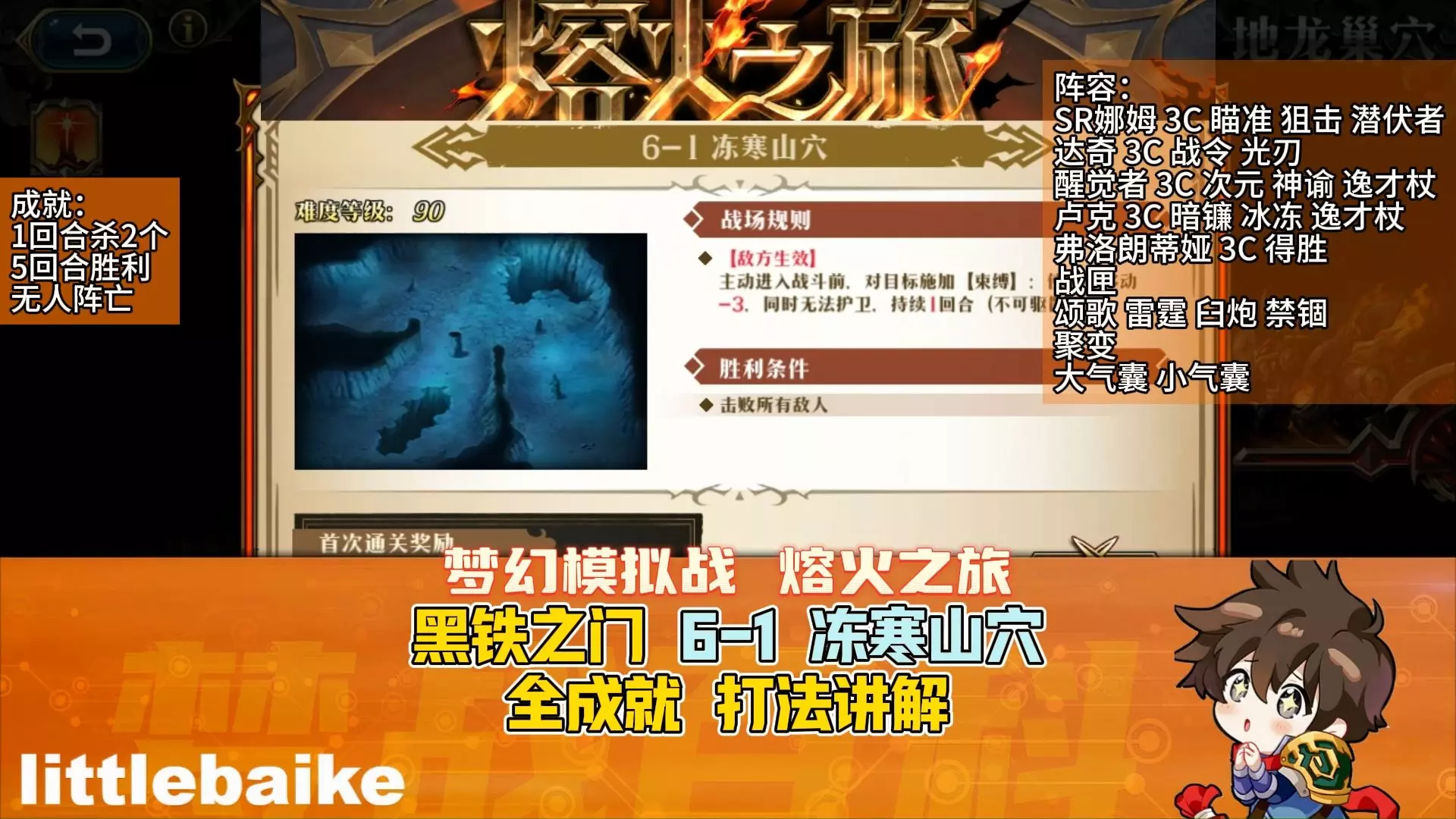 这是《梦幻模拟战》熔火之旅黑铁之门6-4血棘渊狱的全成就打法讲解,分享了达成“第一回合杀2人、5回合通关、我方无人阵亡”成就的阵容配置与战匣、聚变选择,助力玩家通关拿满成就。