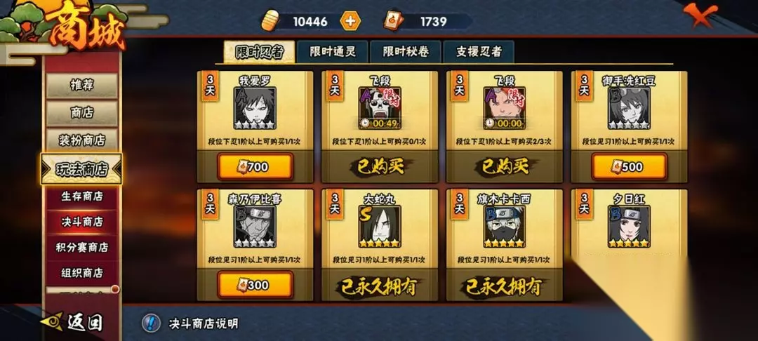 时效为王,策略囤卡提升战力 体验卡生命力短暂,多数稍纵即逝。激活后立刻投入实战,才是对它的最高敬意。若暂无迫切需求?别慌,做个囤卡达人吧!将这些机会稳稳存下: 遭遇高难关卡久攻不下?关键时刻激活强力忍者助阵通关。 想尝试全新流派战术组合?体验卡带来零成本试错空间。 日常积累是王道!坚持完成组织任务、刷满每日活动奖励,体验卡资源便能细水长流。不知不觉间,你的"忍者试用库"日益壮大,零氪党也能灵活调度强力阵容,应对各种战场风云! 别再让强力角色只停留在梦想阶段。一张体验卡,就是打开高阶战力大门的钥匙。掌握领取途径与高效使用技巧,活用限时体验突破战力瓶颈,你也能在忍界战场中打出属于自己的高光时刻!