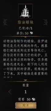 五、此时在敲钟人弗罗洛对面的破洞出去,可至黑精商人处购买任务道具[脂油蜡烛]。