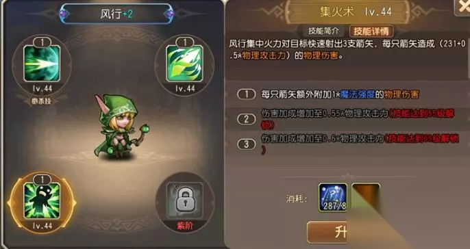三、集火术 向敌方快速射出3支箭造成伤害。