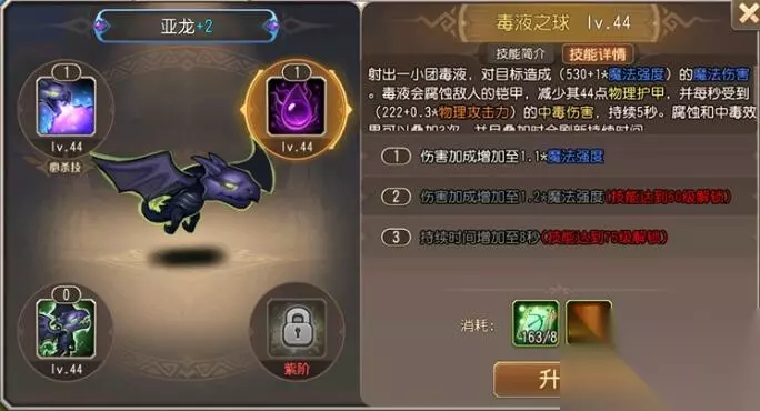 二、毒液之球 吐出毒液对目标造成伤害并减少物理护甲,造成5秒的中毒伤害可与腐蚀效果叠加。