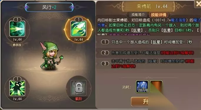 二、束缚箭 向目标射出束缚箭对正前方的敌人造成伤害和0.6秒眩晕,正前方是两个敌人则造成3秒眩晕。