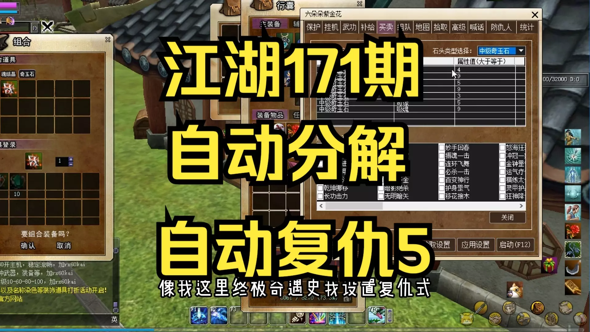 2. 为了避免背包很容易满导致后面打怪的东西捡不了,可以设置将低级的装备吞噬或者出售。