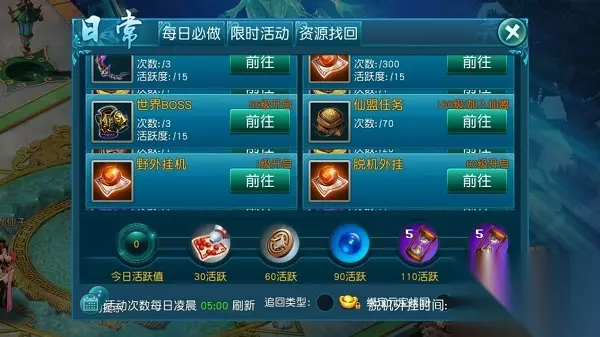 2) 每日的活跃奖励,只要活跃值达到110和150,都可以获得1张5小时的挂机外挂时间